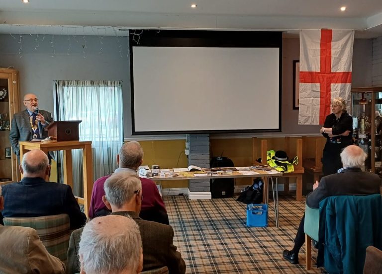 Our President, George Reah, introducing our guest speaker Emma Turner a PCSO with Warwickshire Police who spoke to the club about Operation Resolve, a Warwickshire Police initiative that focusses on Anti Social Behavior in Stratford on Avon.